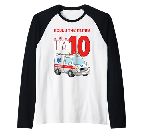 Sound The Alarm I'm 10 Years Old Birthday Kid Ambulance Raglan Baseball Tee