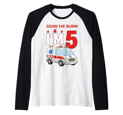 Sound The Alarm I'm 5 Years Old Birthday Kid Ambulance Raglan Baseball Tee