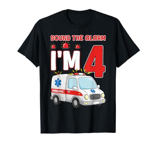 Sound The Alarm I'm 4 Years Old Birthday Kid Ambulance T-Shirt
