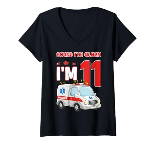 Women's Sound The Alarm I'm 11 Years Old Birthday Kid Ambulance V-Neck T-Shirt