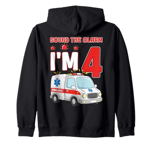 Sound The Alarm I'm 4 Years Old Birthday Kid Ambulance Zip Hoodie