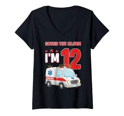Women's Sound The Alarm I'm 12 Years Old Birthday Kid Ambulance V-Neck T-Shirt