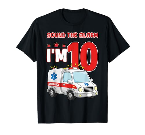 Sound The Alarm I'm 10 Years Old Birthday Kid Ambulance T-Shirt