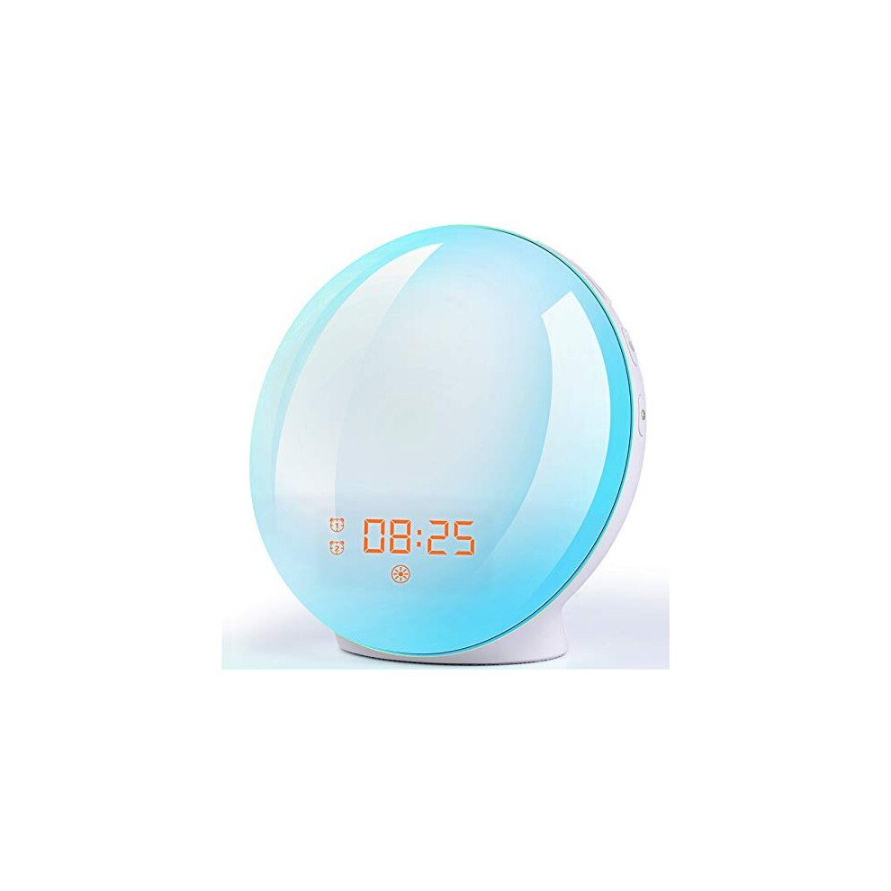 Light Alarm Clock with Sunrise Sunset Simulation, Dual Alarms, 8 Natural Sounds, FM Radio, 15 Colors, 20 Brightness Levels