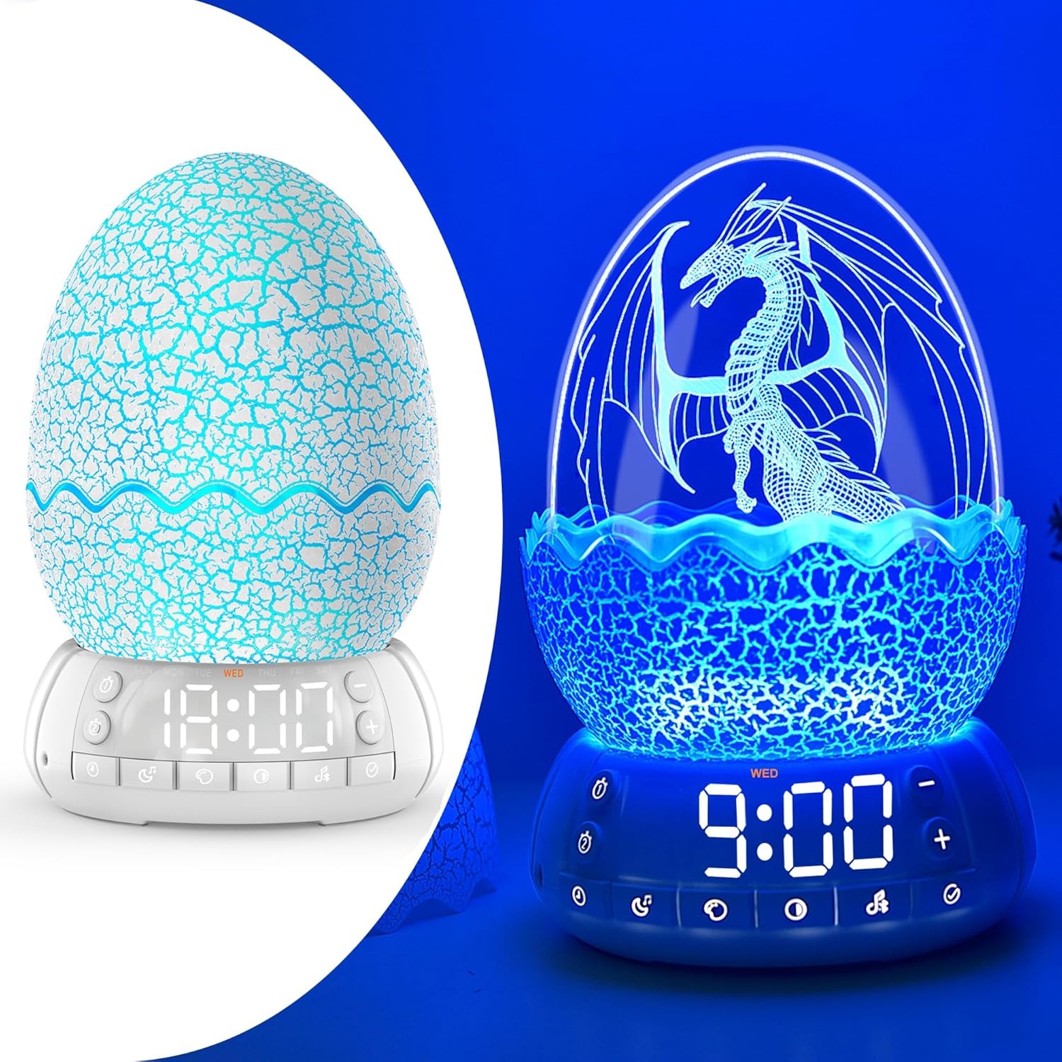 Dragon Egg Alarm Clock with Sunrise Simulation, Wireless Bluetooth Speaker, Por