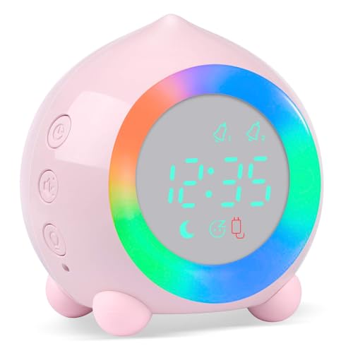 PENYUY Sunrise Alarm Clock, Kids Alarm Clock for Sleep Training with 11 RGB Color Lights & 3 Levels of Brightness Adjustable, Dual Alarms, LED OK to Wake Clock for Girls Boys Teens Heavy Sleepers
