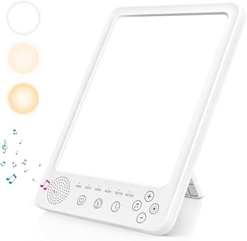 Sad Lamp,15000 Lux Sad Light Therapy Lamp, UV-free Sunrise Alarm Clock With 3 Color Temperature & 5 Brightness, White Noise Machine with 13 Soothing Sounds, Office Desk Home Sleep Travel Essentials