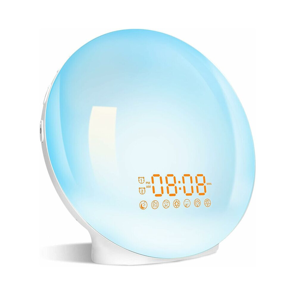 Wake Up Light Alarm Clock with Intelligent Sunrise Simulation, Sunset Simulation LED Light Digital Display for Bedroom Study, Color-Changing Light wit