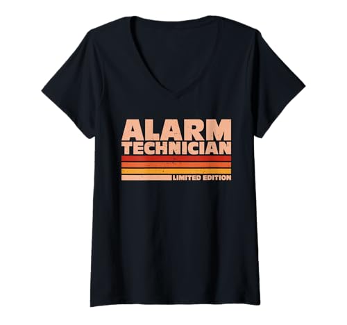 Womens Alarm Technician Retro Sunrise V-Neck T-Shirt