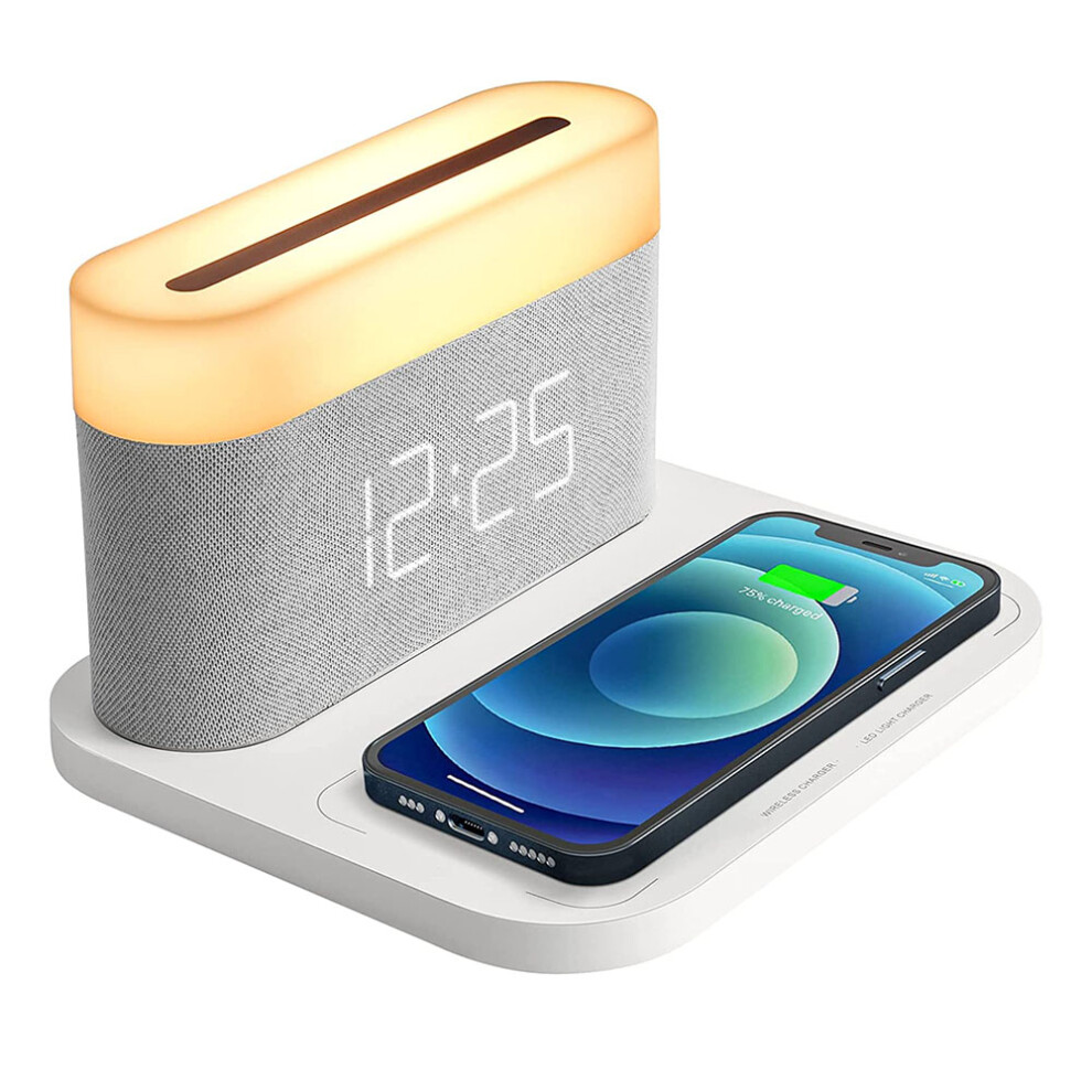 Digital Alarm Clock with Sunrise Simulation, Fast Wireless Charger, Stylish Design, Easy to Use Controls, 15W Max Charging Capability for Quick Device