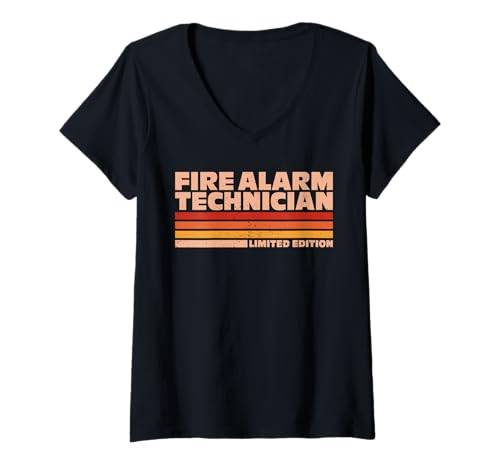Womens Fire Alarm Technician Retro Sunrise V-Neck T-Shirt