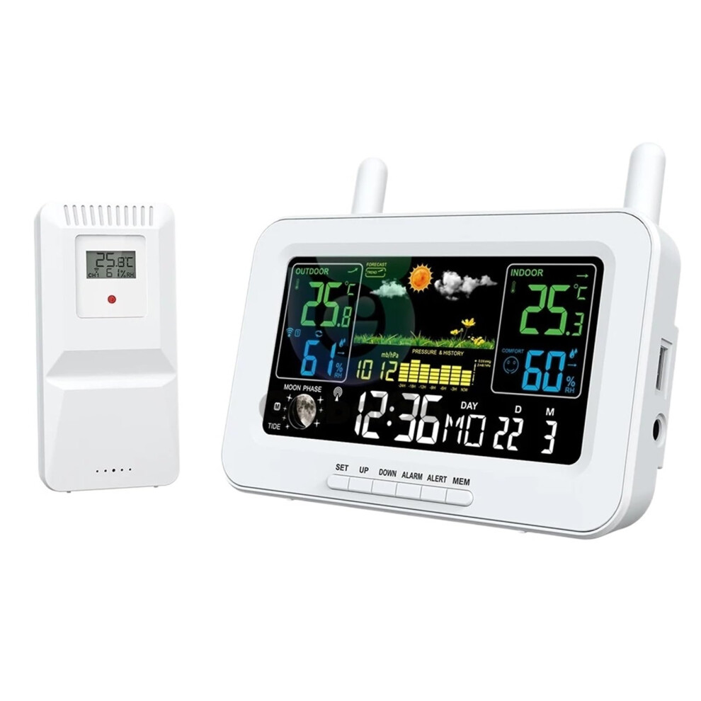Weather Station Alarm Clock With Sunrise Sunset Temperature Humidity Monitor And Wireless Outdoor Sensor For Home Office