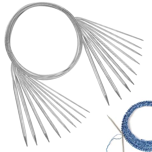 11 Pcs Circular Knitting Needles, 5mm Round Knitting Needles, 80cm Long Knitting Needle Circular with Flexible Cable for Knitting Socks Hats Sweater Blankets