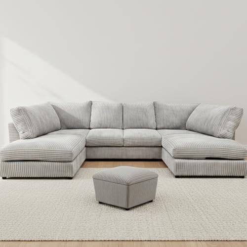 Jumbo U Shaped Sofa – Comfy Back Cushion Corner Sofa Bed with Memory Foam Seating - Couches for Living Room, Bedroom, Office (Silver Full Back)