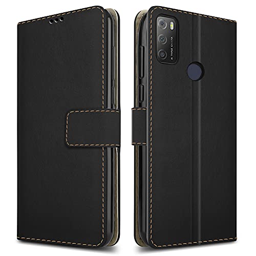 PIXFAB For Alcatel 1S 2021 Leather Phone Case, Magnetic Closure Full Protection Book Folio Design, Wallet Case Cover [Card Slots] and [Kickstand] For Alcatel 1S 2021 (6.52") - Black