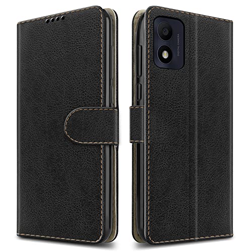 PIXFAB For Alcatel 1B 2022 Leather Phone Case, Magnetic Closure Full Protection Book Folio Design, Wallet Case Cover [Card Slots] and [Kickstand] For Alcatel 1B 2022 (5031G) - Black