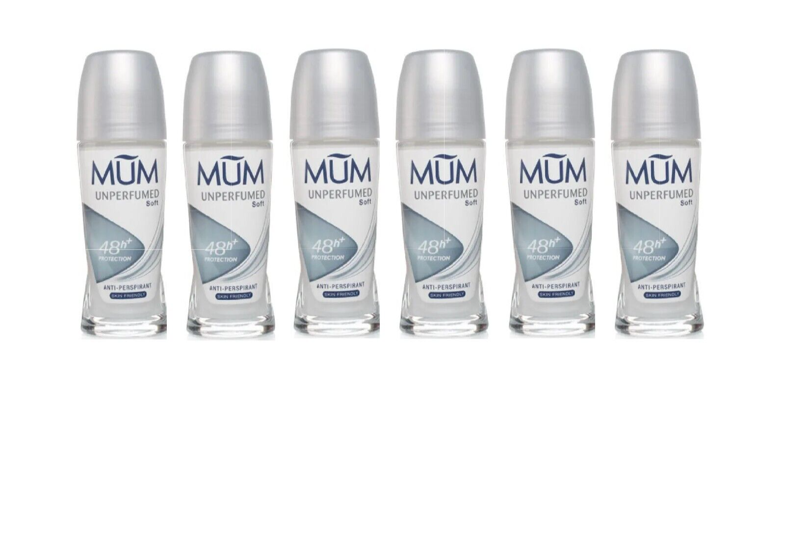 6x Mum Anti Perspirant Roll On Unperfumed Soft Deodorant 50ml Alcohol Free