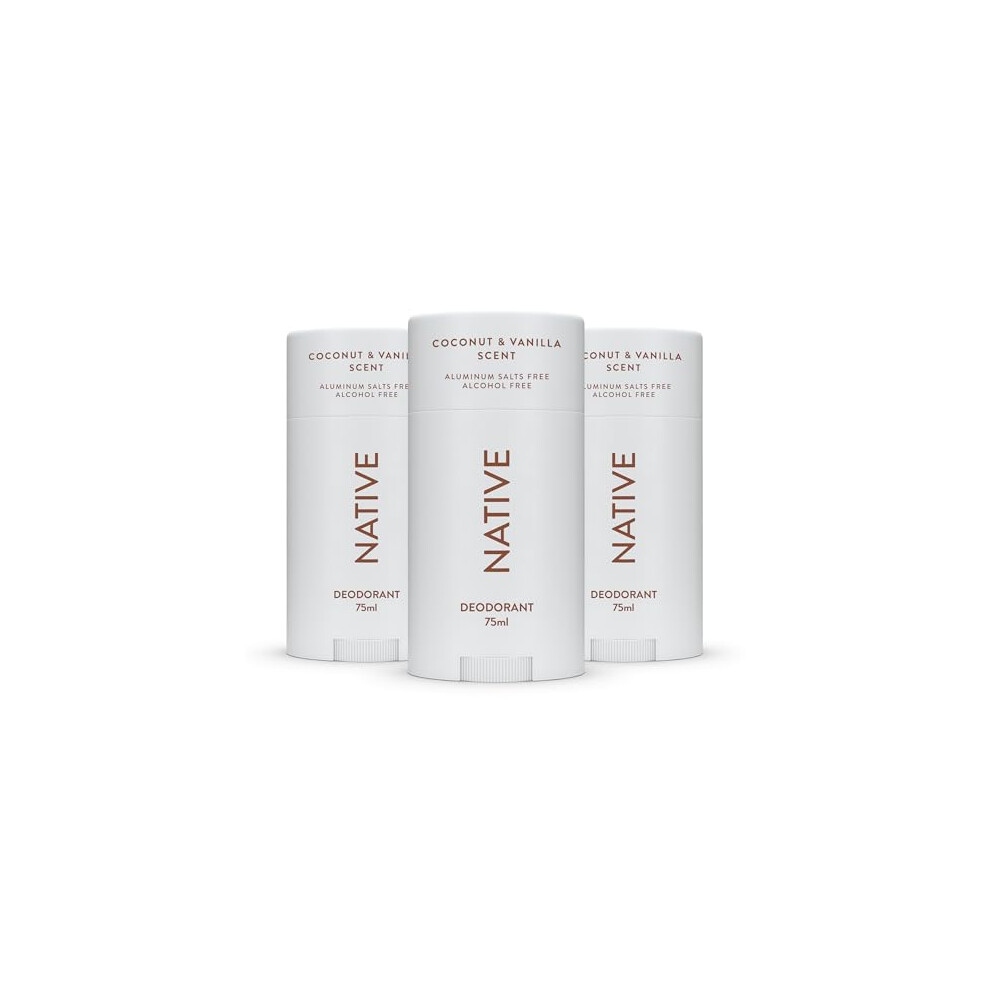 Native Deodorant Womens & Men – Alcohol & Aluminium Free - Coconut & Vanilla Scent - Naturally Derived with Shea Butter, Coconut Oil & Baking Soda - 72 Hour Odor Control (3 Pack, 75ml Each)