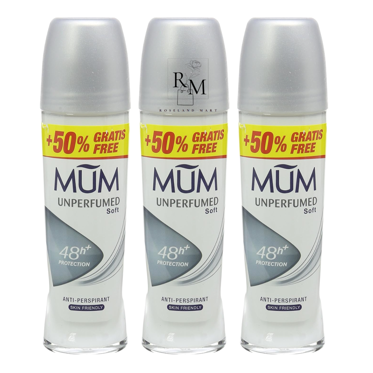 3x Mum Roll On Unperfumed 48H Anti Perspirant Deodorant 75ml Alcohol Free