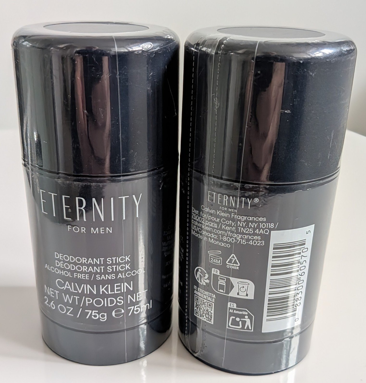 2x Calvin Klein Men's Eternity Deodorant Sticks Navy 75ml Alcohol Free Formula