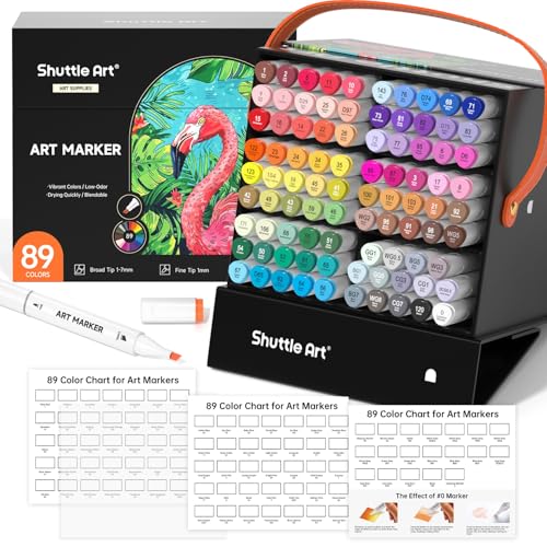 Shuttle Art 89 Colours Alcohol Markers, Professional Dual Tip Art Pens and Colourless Blender, Felt Tip Pens with Case for Artists Adult Illustration Colouring Sketching Drawing