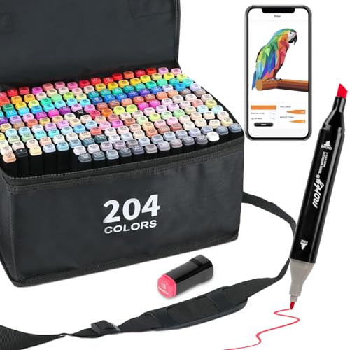 AEDAGA 204 Colours Alcohol Markers with Free App for Colouring, Alcohol Pens for Anime,Manga,Drawing,Sketching and Calligraphy, Art Supplies for Adults