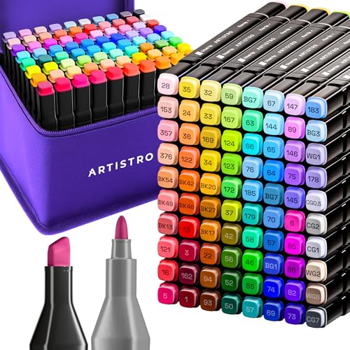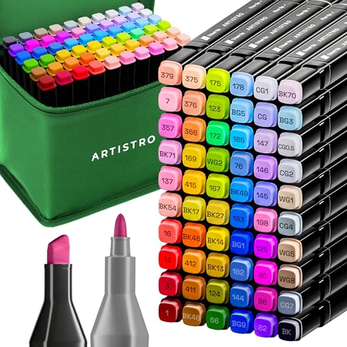 ARTISTRO 80 Dual-Tip Alcohol Markers - Alcohol-Based Pens Set, Chisel + Fine Tip, Quick Dry, Carrying Case Included
