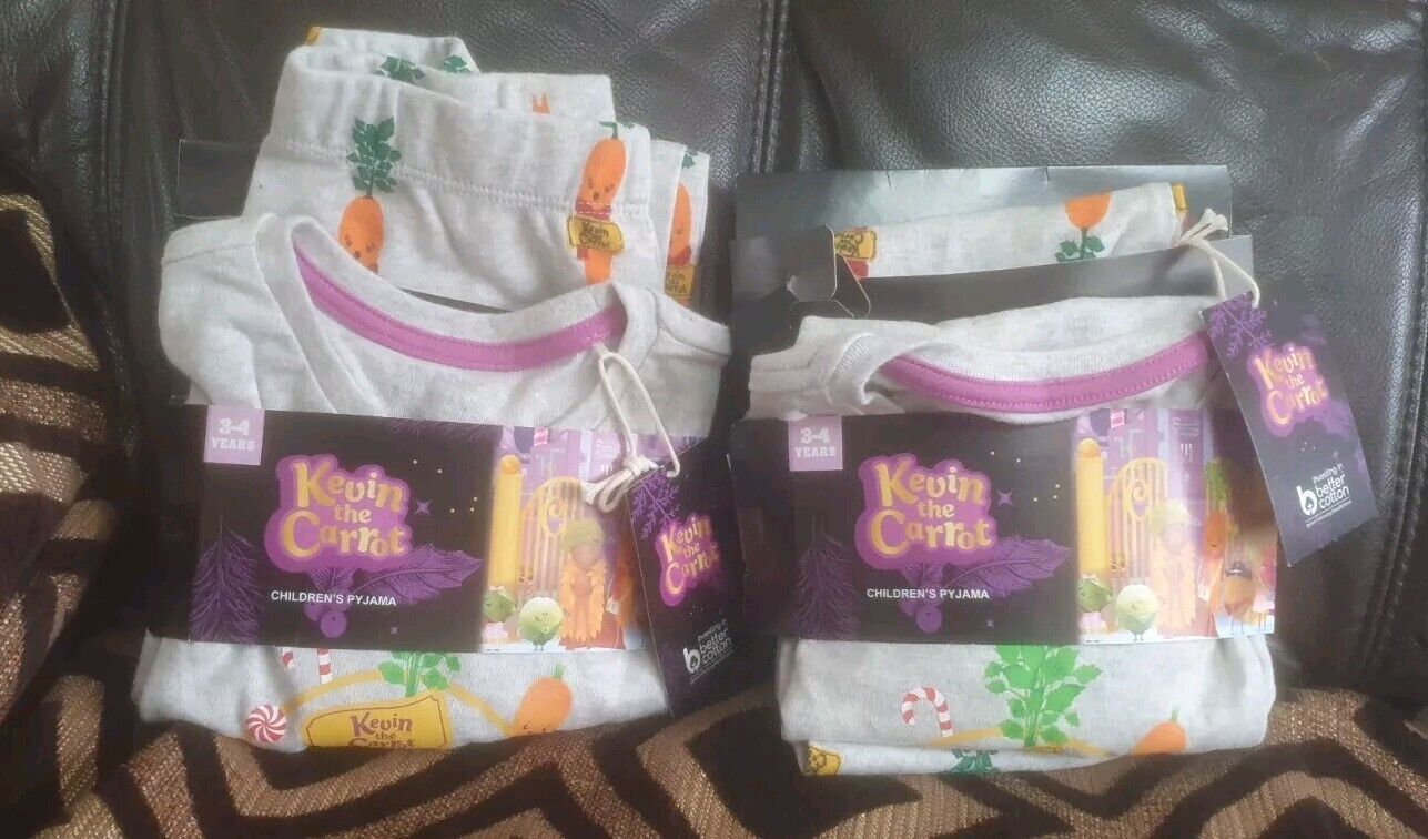 2 X Bnwt Kevin The Carrot Children's Pyjama PJ’s Boys Girls 3-4 Years Grey Kids