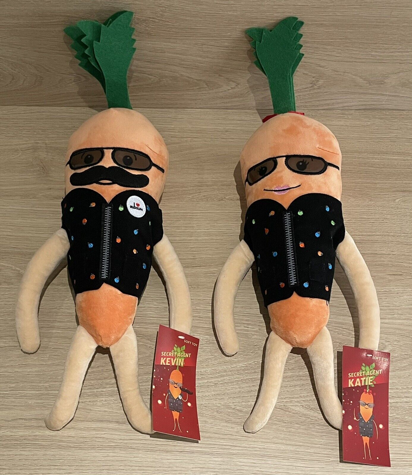 BNWT Aldi Kevin the Carrot 2024 Plush Secret Agent Kevin & Agent Katie **NEW**