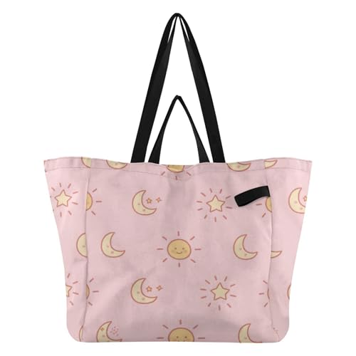 Pink Cartoon Sun Moon Canvas Tote Big Sturdy Kitchen Grocery Bags Shopping Cloth Bag for Women Travel Beach Wedding Laundry Bolsa aldo para Mujer