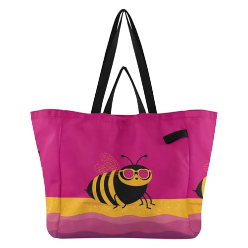 Lazy Beach Bee Raspberry Large Tote Bags Big Sturdy Kitchen Grocery Bags Teacher Tote for Women Spa Shower Necessities Bolsa aldo para Mujer