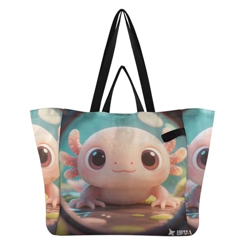 Cartoon Axolotl Large Tote Bags Recycle Kitchen Grocery Bags Pool Bag for Women Travel Beach Party Bolsa aldo para Mujer