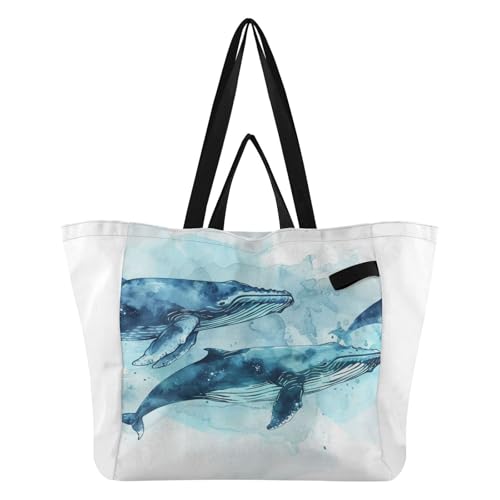 Whales Light Blue Watercolor Style Large Canvas Tote Trendy Kitchen Grocery Bags Everything Bag for Women Wedding Party,Travel,Laundry Bolsa aldo para Mujer