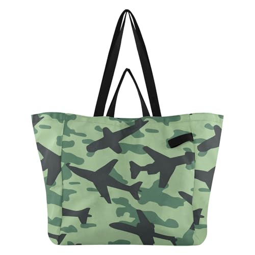 Green Planes Camouflage Large Canvas Tote Utility Kitchen Grocery Bags Crafts Bag for Men Maternity delivery kit Essential Bolsa aldo para Mujer