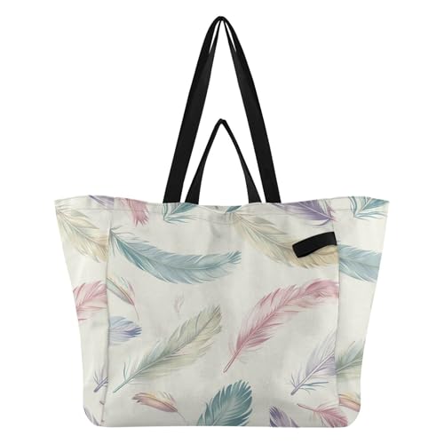 Simple Colored Feathers Large Canvas Tote Bags Trendy Kitchen Grocery Bags Bridesmaid Tote for Women Spa Shower Necessities Bolsa aldo para Mujer