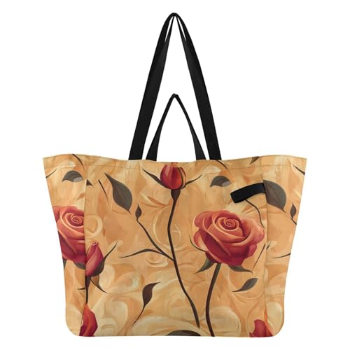 Red Brown Vintage Roses Large Tote Bags Big Sturdy Kitchen Grocery Bags Beach Bag for Men Farmers Market, Travel Bolsa aldo para Mujer