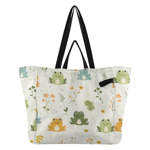 Cartoon Frog Cute Tote Canvas Bags with Handles Kitchen Grocery Bags Shopping Cloth Bag for Men Hospital, Shopping, Beach, Travel Bolsa aldo para Mujer