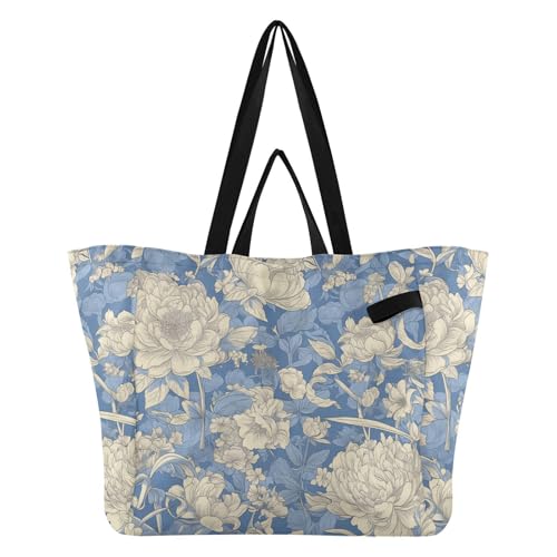 Victorian Style Flowers Blue Large Tote Bags Foldable Kitchen Grocery Bags Laundry Bag for Women Wedding Favor, Travel Bolsa aldo para Mujer