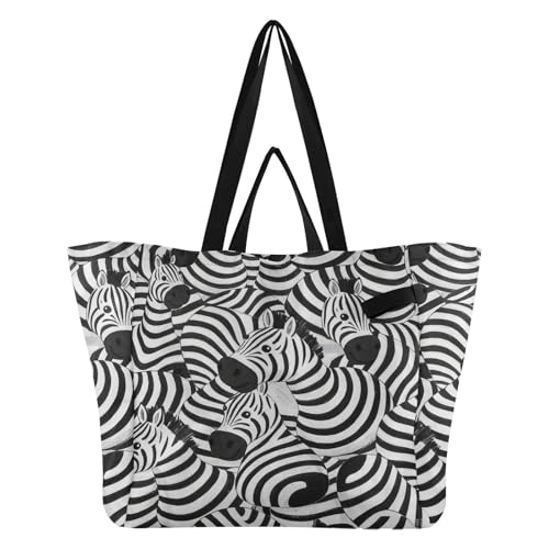 Cute Cartoon Zebras Black and White Tote Bags Canvas Large Capacity Kitchen Grocery Bags Crafts Bag for Men Wedding Party Presents Bolsa aldo para Mujer