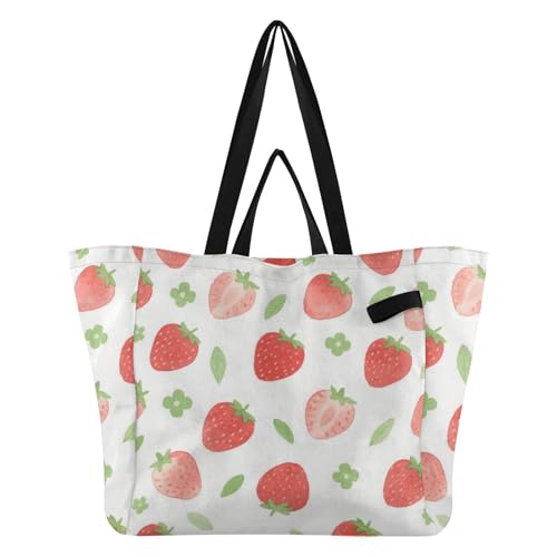 Red Strawberry Tote Bags Canvas Recycle Kitchen Grocery Bags Large Tote Bag for Men Travel Kitchen Store Bolsa aldo para Mujer