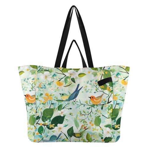 Spring Pear Blossom Birds Green Canvas Tote Bags Large Capacity Kitchen Grocery Bags Everything Bag for Women Travel, Shopping Weekend Bolsa aldo para Mujer