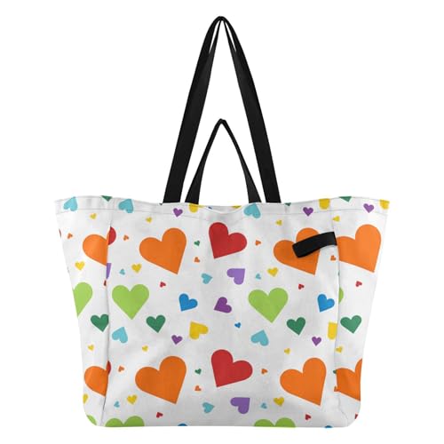 Valentine Rainbow Hearts Tote Canvas Bags with Handles Kitchen Grocery Bags Shopping Tote Bag for Men Travel Kitchen Store Bolsa aldo para Mujer