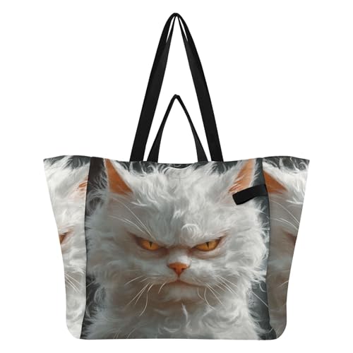 Cartoon Funny Turkish Angora Cats Anger Canvas Bags Tote Waterproof Kitchen Grocery Bags Mom Mama Bag for Women Wedding Party Presents Bolsa aldo para Mujer