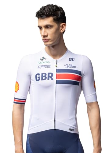 ALE' Mens British Official Pr-s 2.0 Short Sleeve Cycling Jersey, White, XL EU