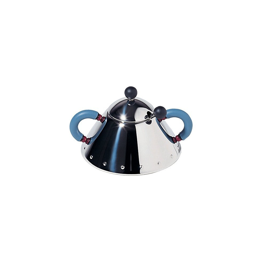 Alessi 9097 Sugar Bowl and Spoon in Stainless Steel, Blue