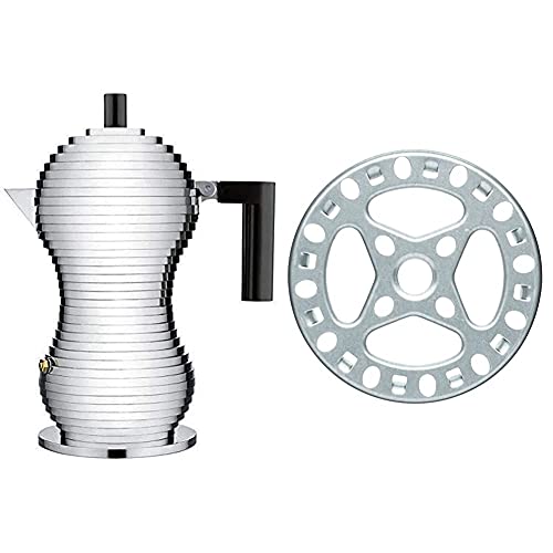 Alessi 9090/3 3-Cup Espresso Coffee Maker in 18/10 Stainless Steel Mirror Polished & KitchenCraft Gas Ring Reducer Trivet for Gas Hobs, Suitable for Stovetop Coffee Makers