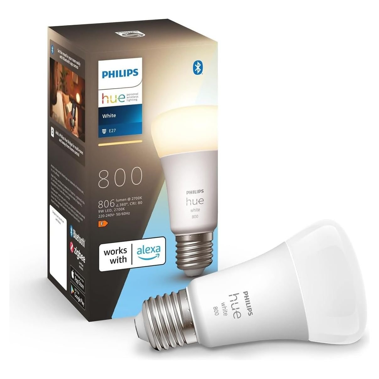 Philips Hue White A60 Smart LED Light Bulb [E27 Edison Screw] for Home Indoor Lighting with Amazon Echo and Alexa