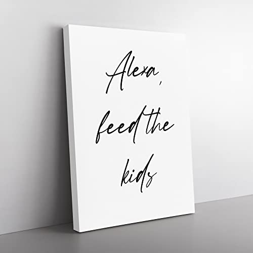 Alexa Feed The Kids Typography Canvas Print for Living Room Bedroom Home Office Décor, Wall Art Picture Ready to Hang, 30 x 20 Inch (76 x 50 cm)