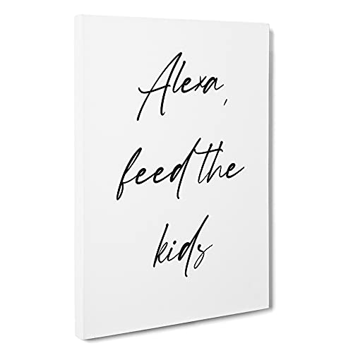 Big Box Art Alexa Feed The Kids Typography Canvas Wall Art Print Ready to Hang Picture, 76 x 50 cm (30 x 20 Inch), White, Black