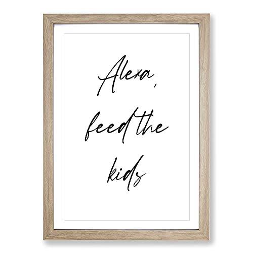 Alexa Feed The Kids Typography Quote Framed Wall Art Print, Ready to Hang Picture for Living Room Bedroom Home Office Décor, Oak A4 (34 x 25 cm)